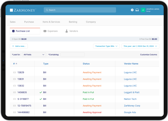 ZarMoney supports a wide variety of features, including expense tracking, fund allocation, account receivable & payable, advanced accounting, and reporting.